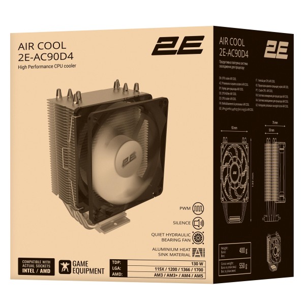 2E GAMING CPU cooling system AIR COOL (AC90D4) OEM,775,115X,1366,1200,1700, FM1,FM2,AM2,AM2+,AM3,AM3+,AM4, 90mm,TDP 130W