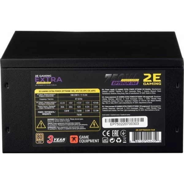 2E კვების ბლოკი EP750GM-140, 750W, 80 Plus, Power Supply, Black