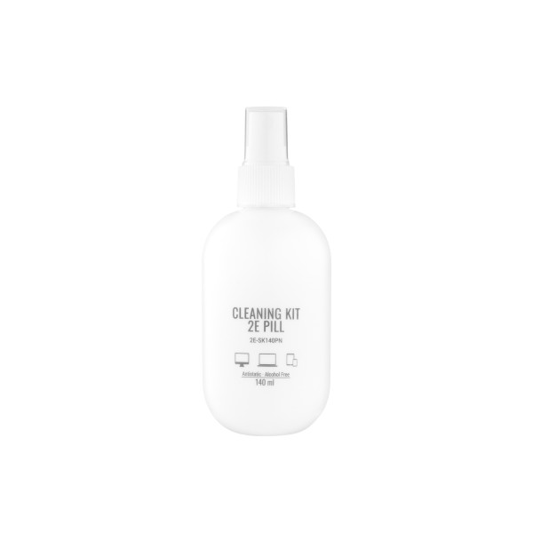 საწმენდი Cleaning kit 2E PILL for office equipment (liquid 140ml, whipe 20cm), white-pink