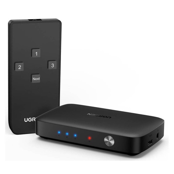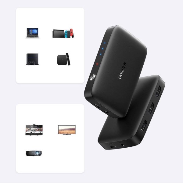 ადაპტერი UGREEN CM332 (80125), HDMI Switch 3 In 1 Out 4K HDMI Switcher With Remote Control, Black