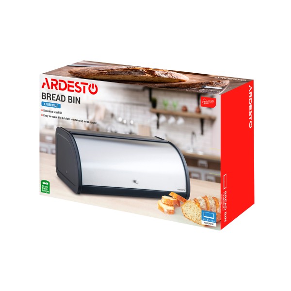 Ardesto პურის შესანახი Bread bin Gemini, 44.5х26.5х17.5cm, metal, stainless steel, black