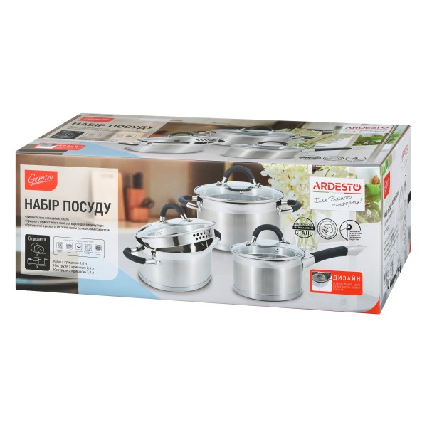 Ardesto ქვაბების კომპლექტი Cookware set Gemini Monza with drain, 6pcs, stainless steel