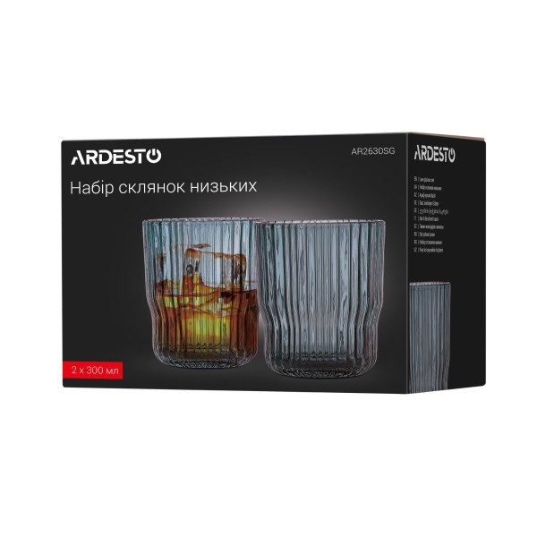 Ardesto ჭიქების ნაკრები Low glasses set, Graphite, 300ml, 2pcs, glass, grey