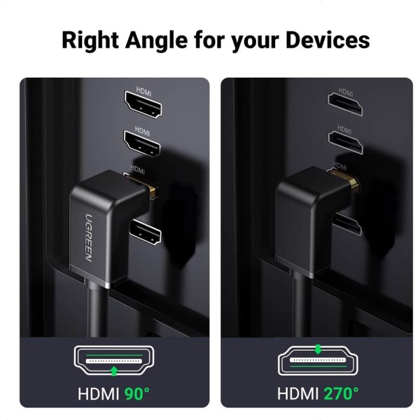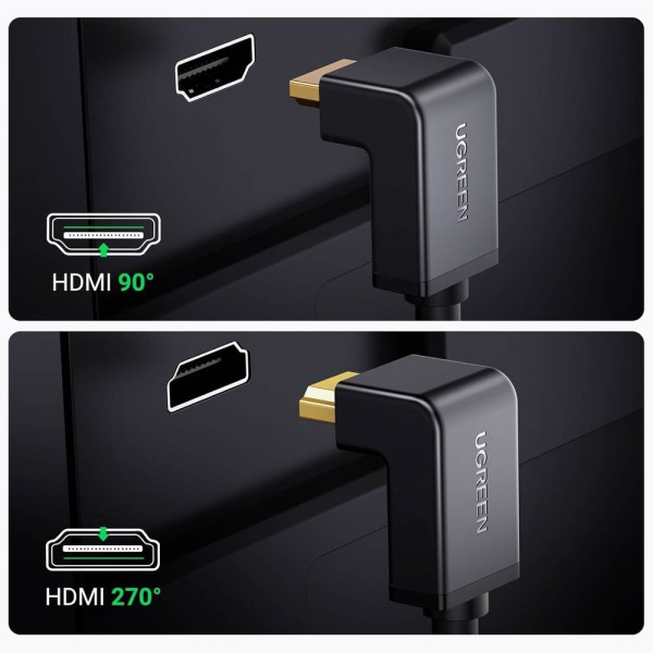 HDMI კაბელი UGREEN HD103 (10172), 4K HDMI Cable Male to Male, 90 Degree, 1m, Black