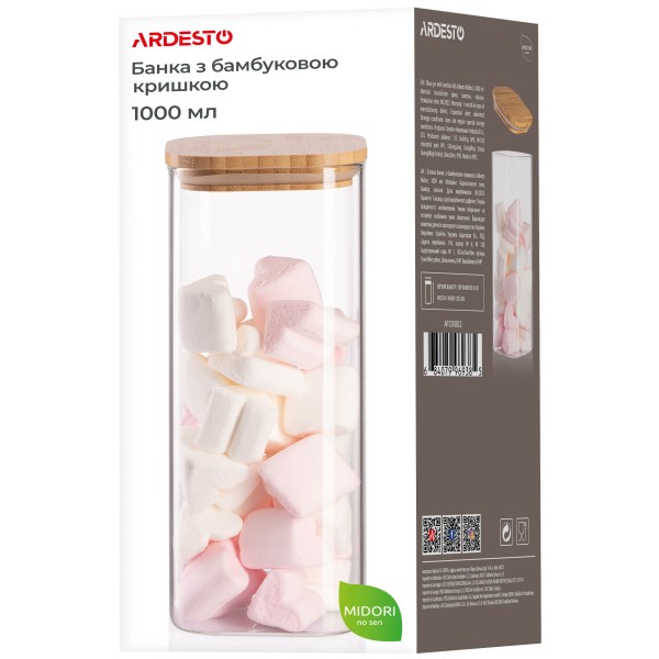 Ardesto ქილა Jar Fresh, 1000ml, glass, bamboo, square, transparent
