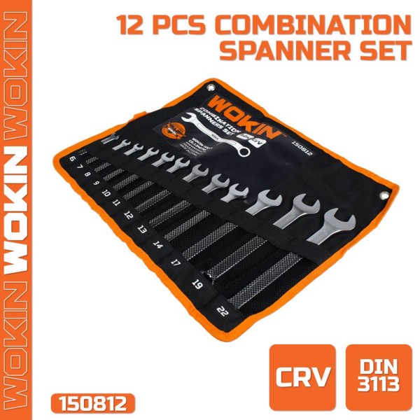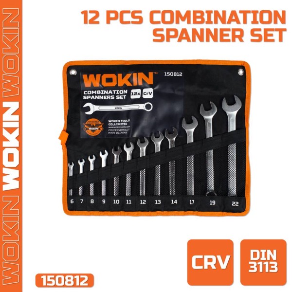 კომბინირებული ქანჩის გასაღების ნაკრები Wokin 150812, 12Pcs, Combination Spanner Set (INDUSTRIAL), Silver/Black