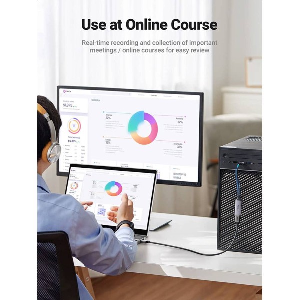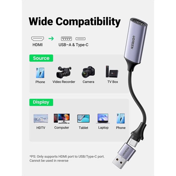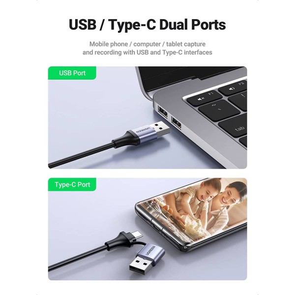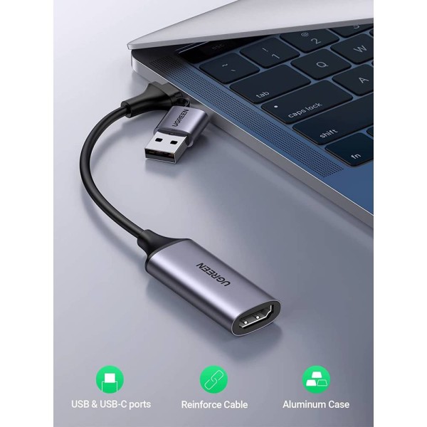 Video Capture Card UGREEN CM489 (40189), 4K HDMI to USB/Type-c, HDMI Video Grabber Box for Live Stream, Silver