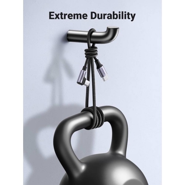 USB კაბელი UGREEN US255 (50123), 60W, Type-C to Angled Type-C Round, 1m, Grey