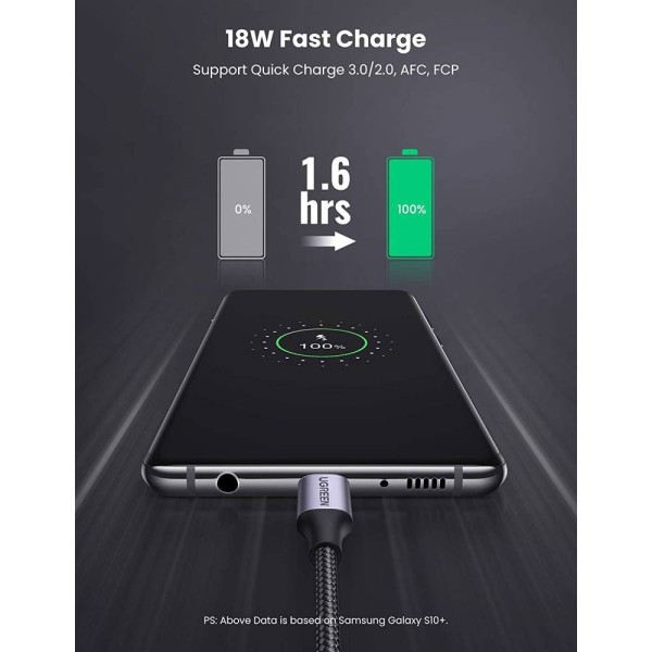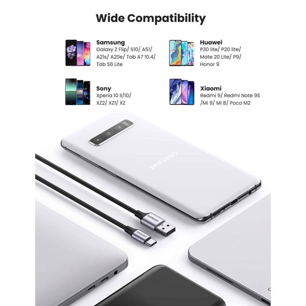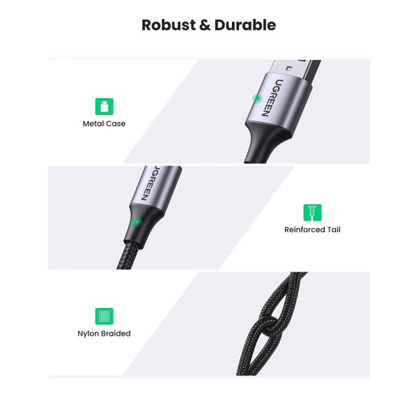 მობილურის USB დამტენი UGREEN 60128 USB 2.0 A to USB-C Cable Nickel Plating Aluminum Braid 2m (Black)