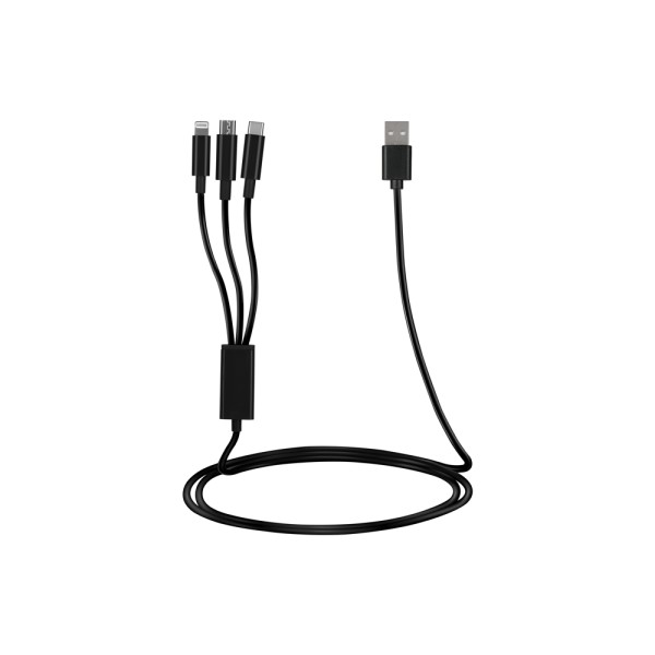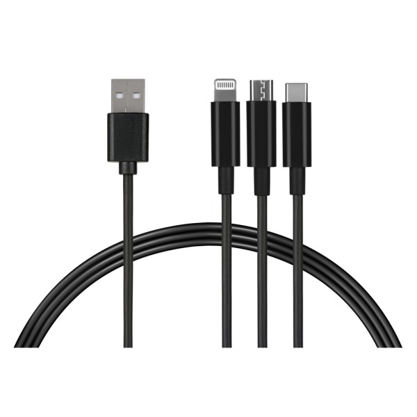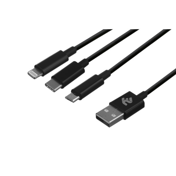 2E USB კაბელი Cable 3 in 1 Micro/Lightning/Type C, 5V/2.4A, Black,1.2m