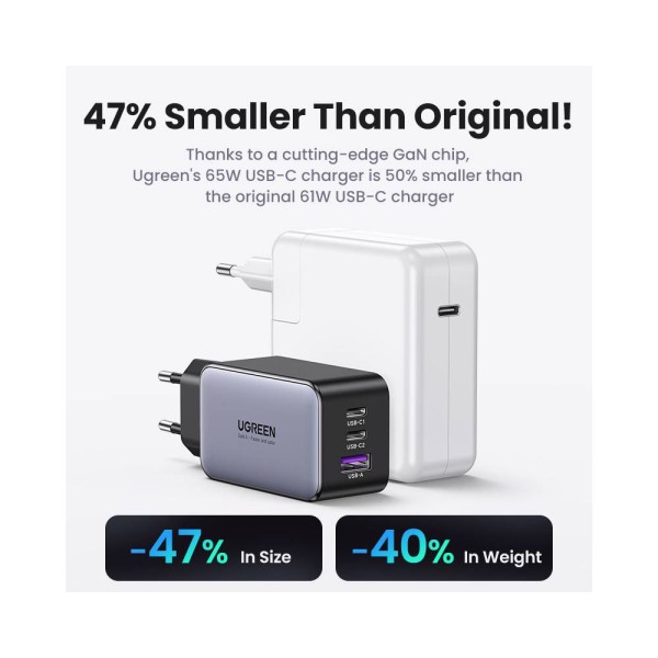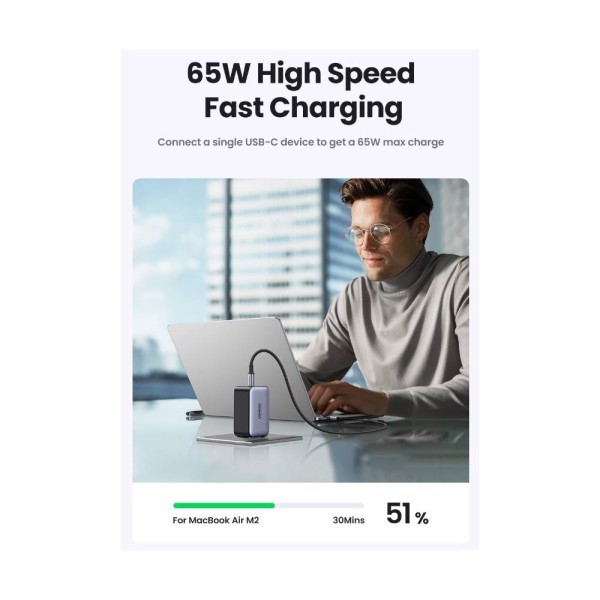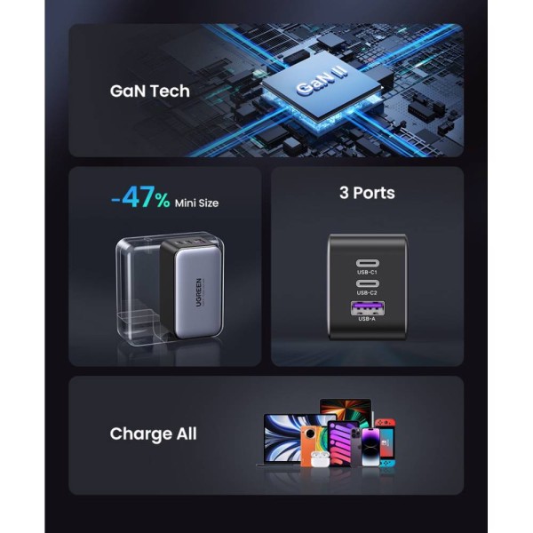 მობილურის დამტენი UGREEN X755 (25871) Nexode Pro, 65W, USB, Type-C with Type-c Cable 1.5m, Grey