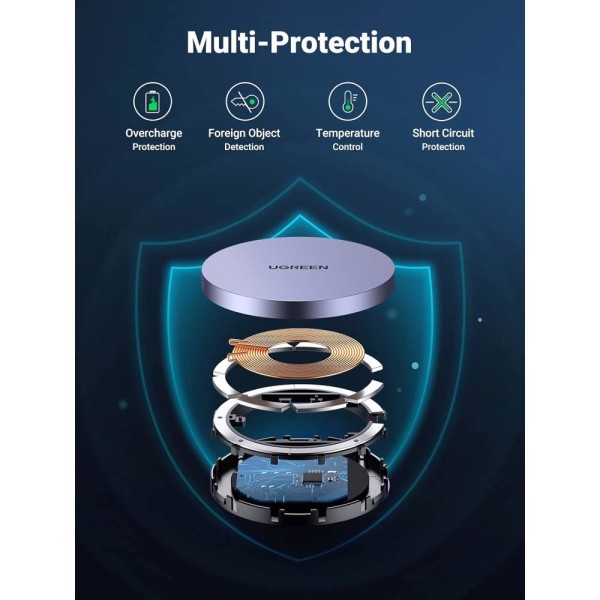 უსადენო დამტენი UGREEN CD245 (30233), MFI MagSafe 15W, Type-C to Magnetic Wireless Charger, Gray