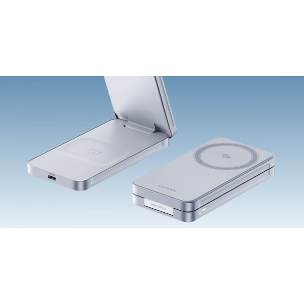 უსადენო დამტენი UGREEN W756 (55963) MagFlow, 25W, 2-in-1 Magnetic Wireless Charger, Blue