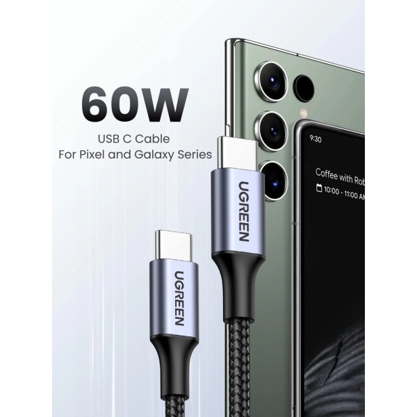 USB კაბელი UGREEN US261 (50149), 60W, Type-C To Type-C, 0.5m, Grey