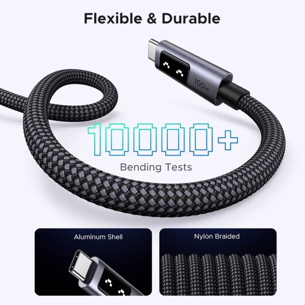 USB კაბელი UGREEN Uno L509 (35501), 100W, Type-C to Type-C, 1M, Black/Grey