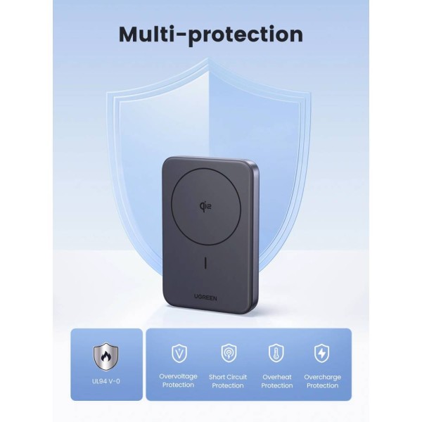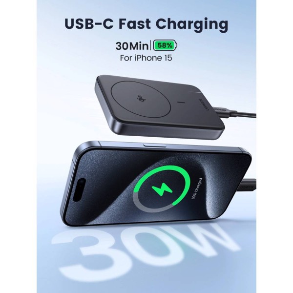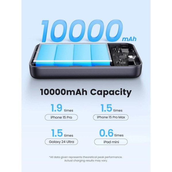 პორტატული დამტენი UGREEN PB761 (45763), 10000mAh 30W, Magnetic Wireless Power Bank, Black