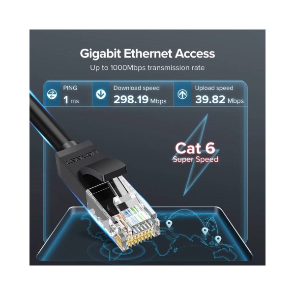 ქსელის კაბელი UGREEN NW102 (20159) Cat6 Patch Cord UTP Lan Cable 1m (Black)