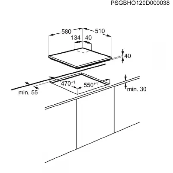 ქურის ზედაპირი Electrolux EGE6182NOK 3Gas+1Electric 60cm Black Glass