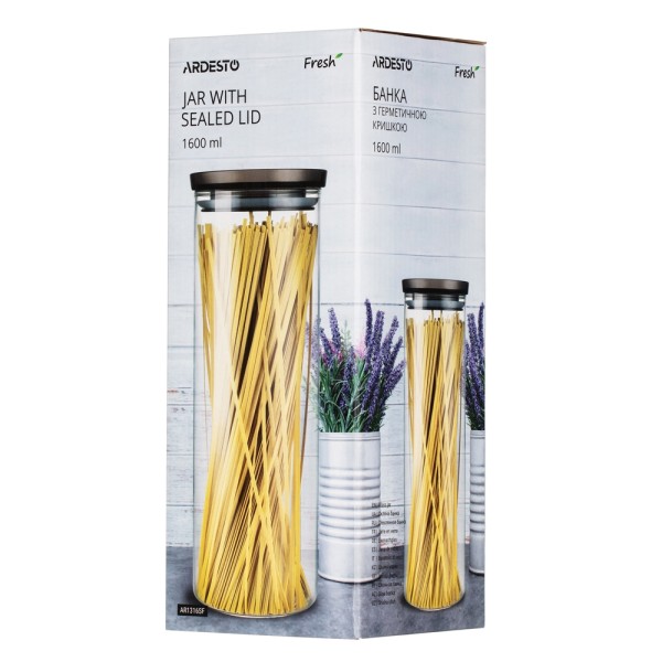 Ardesto ქილა Jar Fresh, 1600ml, glass, plastic, transparent