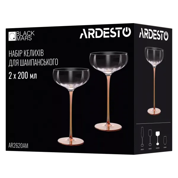 ჭიქების ნაკრები Ardesto Champagne glasses set Black Mars Amber 200ml, 2pcs, glass, transparent-golden