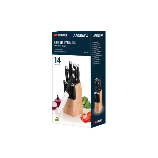 Ardesto დანების ნაკრები Knife set Gemini Gourmet 14 pcs, s/s, plastic, block: rubber wood