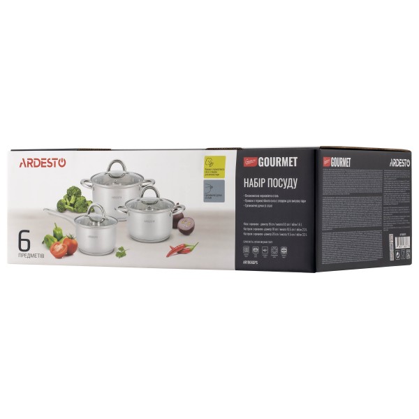 Ardesto ქვაბების ნაკრები Cookware set Gemini Gourmet Andria, 6pcs, stainless steel