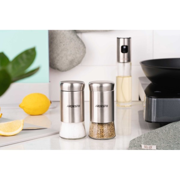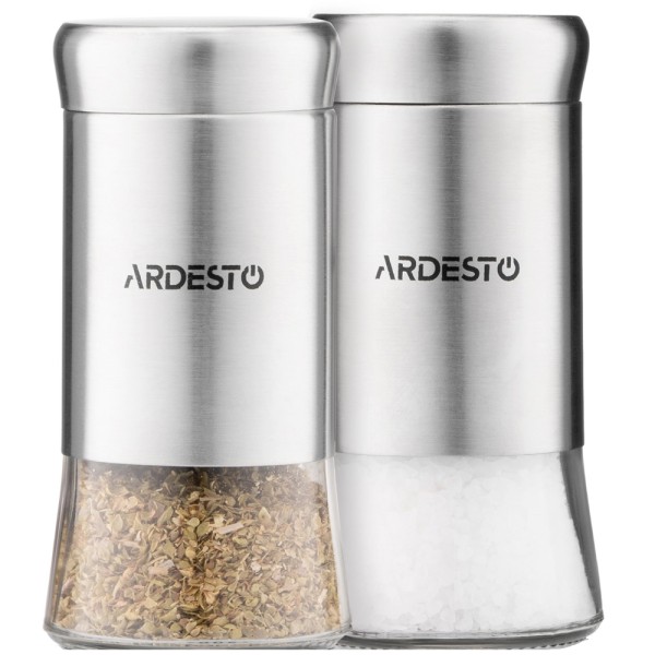 Ardesto სამარილე და საპილპილე Spices Shakers Set Gemini, 2 pcs, stainless steel, glass