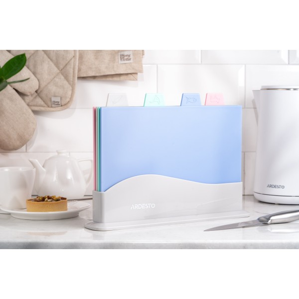 Ardesto საჭრელი დაფა 4 ცალი Cutting board set with stand Fresh, 4 pcs, 33,5х23,5х7cm, plastic