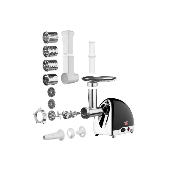 Ardesto ხორცის მანქანა meat grinder, 1800W, 2kg/min, 3 cutting plates, sausages nozzle, 4 vegetable slicer, plastik, black-silver