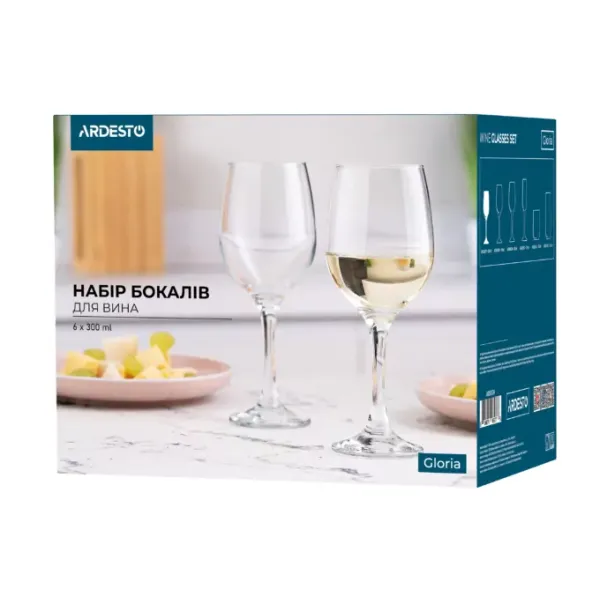 Ardesto Wine glasses set Gloria 6 pcs, 300 ml, glass