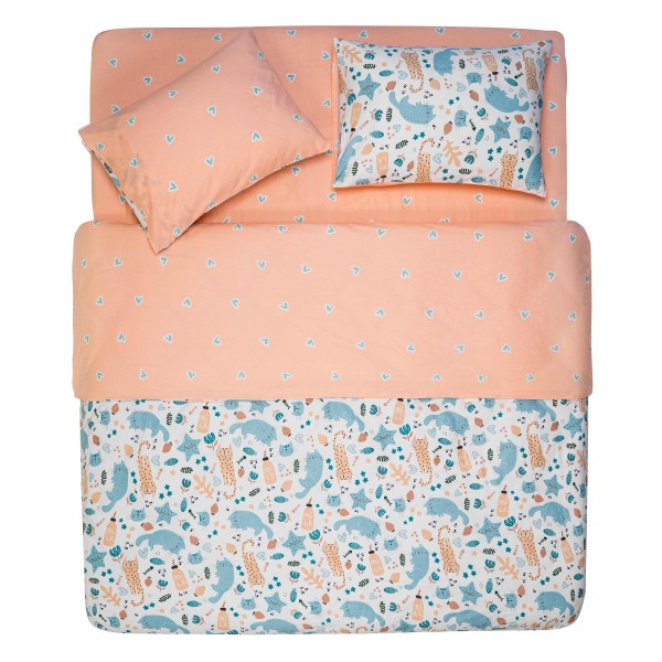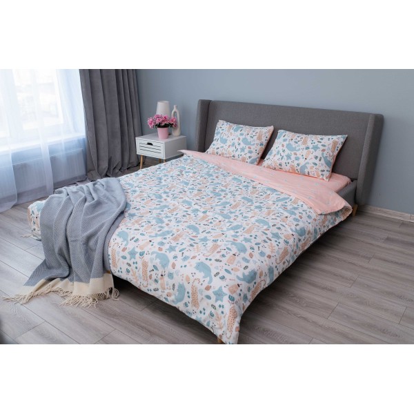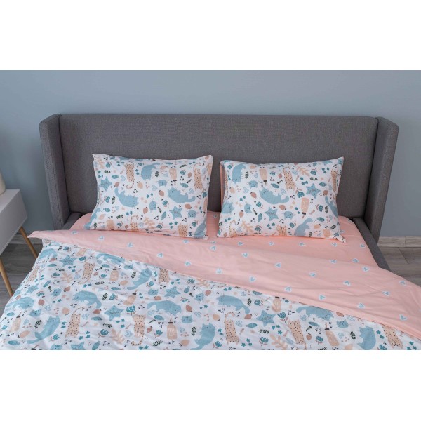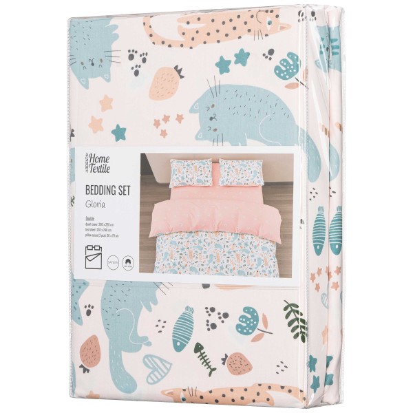 Ardesto თეთრეულის ნაკრები Bedding set 2.0 Gloria, sateen, duvet cover 200x220cm, bed sheet 230x240cm, pillowcases (2) 50x70cm, 100% cotton, cats light pink