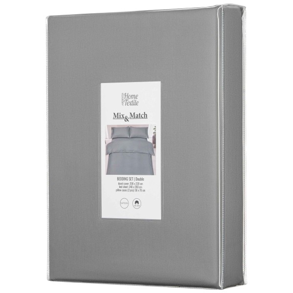 Ardesto თეთრეულის ნაკრები Bedding set 2.0 Mix&Match, sateen, duvet cover 200x220cm, bed sheet 240х260cm, pillowcases (2) 50x70cm, 100% cotton, gray