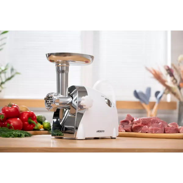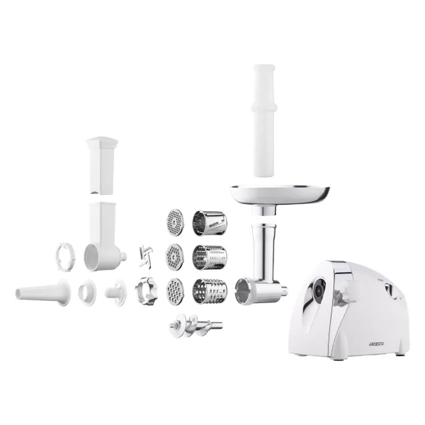 Ardesto ხორცსაკეპი Meat grinder, 2000W, prod.-1.9kg/min, 3 cutting plates+for sausag.plates, 3 vegetable slicer, plastik, black-silver