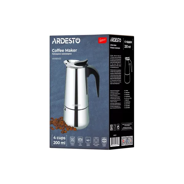 Ardesto Coffee Maker Gemini Apulia, 0.2l, 4 cups, stainless steel