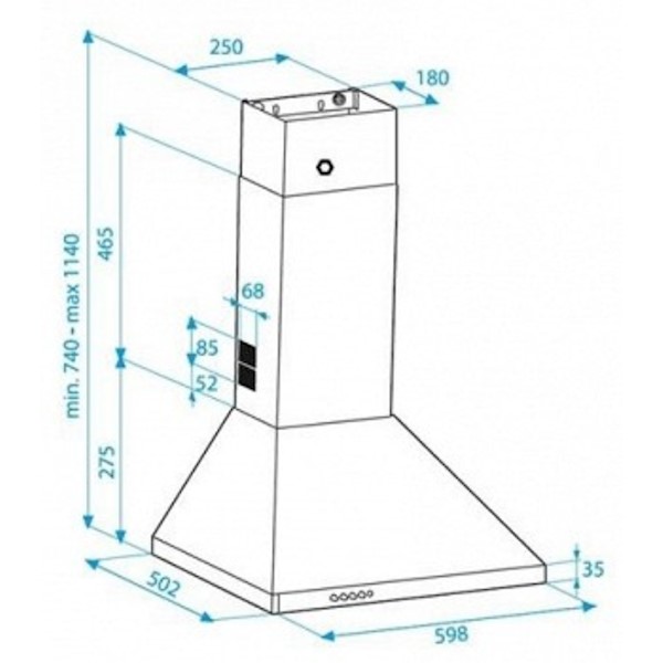 ◦ ზომა (სიგანე/სიმაღლე/სიღრმე): 598x740-1020x502 მმ