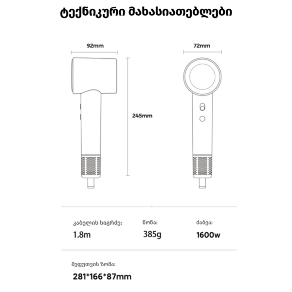 თმის საშრობი ALLX AXH-015G, 1600W, High Speed Hair Dryer, Negative Ionic, Turbo, Gray