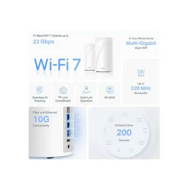 WiFi როუტერი Router TP-Link TP-link Deco BE85(2-pack) BE19000 Whole Home Mesh Wi-Fi 7 System
